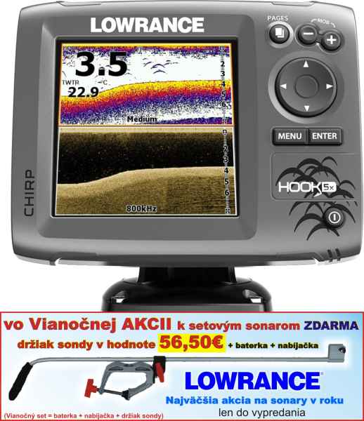 Sonar LOWRANCE HOOK - 5x so sondami 60°a 120°(83/200kHz) a 30°/55°