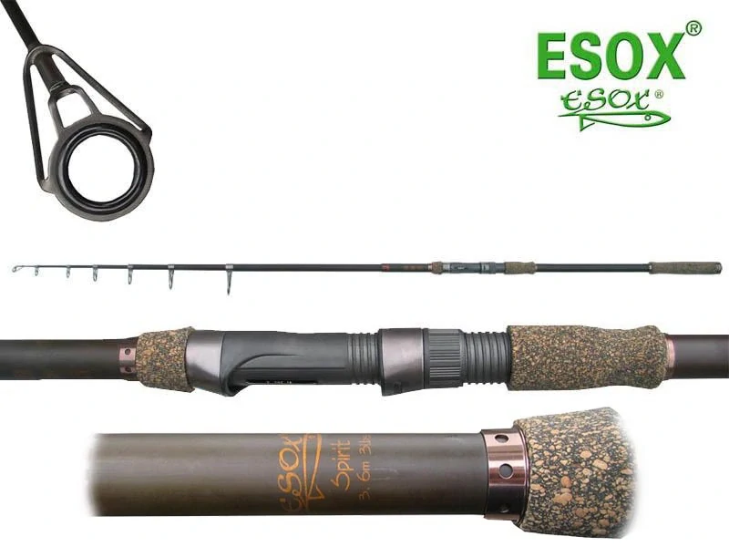 - Prút Esox Spirit 360cm 3,00 lbs naväzuje na veľmi úspešnú sériu prútov Raptor Spider a Winner Carp. Tieto sú veľmi obľúbené a vyznačujú sa vynikajúcim pomerom kvality a ceny.Esox Spirit má veľmi vydarený dizajn, je veľmi štíhly a ľahký s malou transportnou dĺžkou. Prúty sú vyrobený z vysokomodulovaného uhíka IM 10 a osadené novým typom anatomického držiaka navijaka. Majú delenú rúčku, ktorá je vyrobená zo zaujímavého prírodného korku.(pozri detail obrázkov)Transportná dĺžka cca 80 cm.