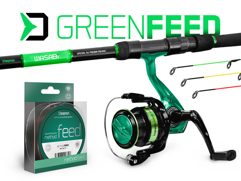 Ak sa neviete rozhodnúť ako si skombinovať spoľahlivú feedrovú zostavu, tak presne pre Vás je tu feedrový set Delphin GreenFEED. Set sa skladá z trojdielneho prútu Delphin WASABI Feeder, blank je vyrobený z ideálneho pomeru kompozitných materiálov. Rukoväť z EVA peny padne do ruky pri zdolávaní ale aj nahadzovaní. Akcia prútu je prijemná a bonusom sú očká s keramickou výplňou. K prútu sú samozrejme pribalené aj tri náhradné špičky (1x Light, 1x Medium, 1x Heavy). Svojím zeleno-čiernym prevedením dokonale zapadne do setu navijak Delphin ELIXIR. Telo z ľahkého kompozitného materiálu zaručuje dlhú životnosť. Guličkové ložiská v počte 3+1 spolu s prevodovým pomerom 5,0:1 a mechanizmom s vyváženým rotorom zaručia tichý a plynulý chod s dôkladným ukladaním vlasca. Kapacita cievky je dostatočná k danej rybolovnej technike, pri priemere vlasca 0,18mm sa zmestí na cievku až 275m vlasca. Samozrejme, aby bol set kompletný, tak nesmie chýbať vlasec Method FEED s minimálnou rozťažnosťou, čo Vám zaručí rozoznať záber aj pri tých najopatrnejších rybách. Feedrový set poteší široké spektrum rybárov, ktorí sa venujú rybolovnej technike feeder.