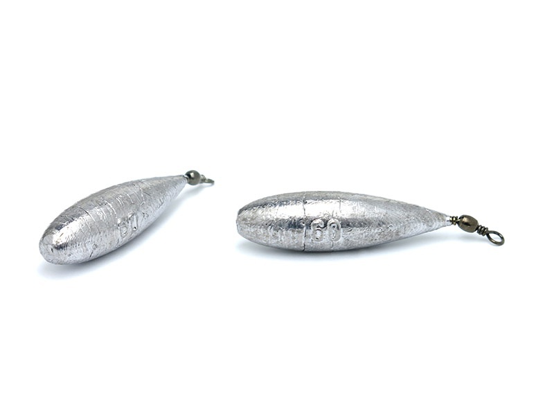 Olovená záťaž v tvare slzy s obratlíkom. Tvar tejto záťaže je vhodný najmä na väčšie vzdialenosti a je vhodný ako koncová záťaž